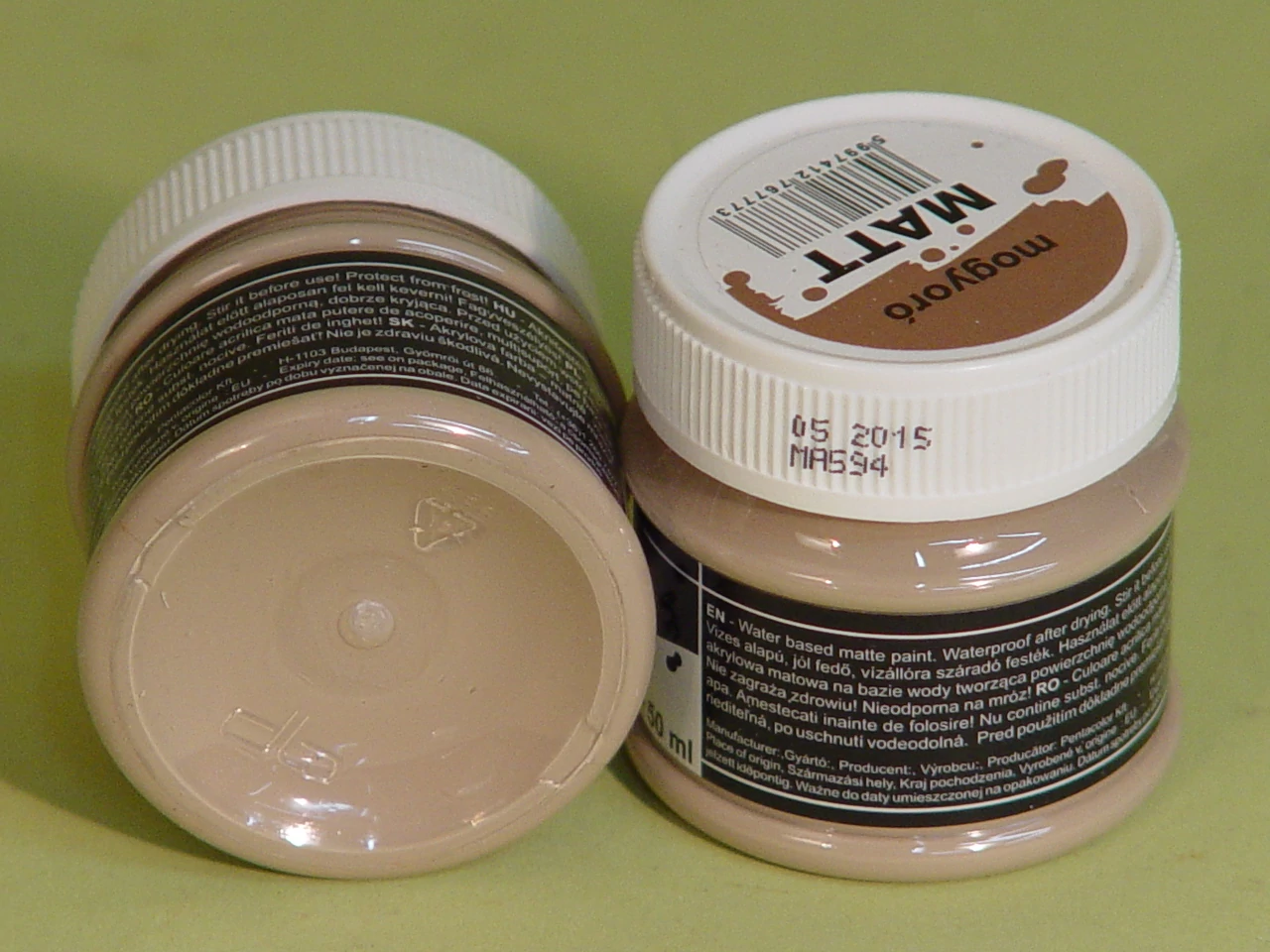 Vízbázisú, vízállóra száradó, matt akrilfesték. Ajánlott: fa, papír, terrakotta, kő, gipsz, polisztirol tárgyak festésére. Használat előtt alaposan fel kell keverni.
