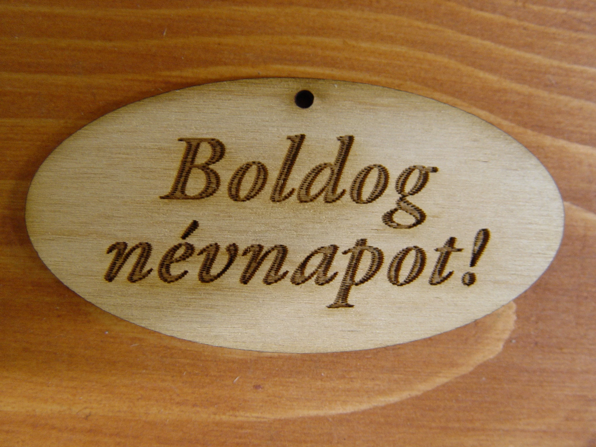 Natúr fa - "Boldog Névnapot" gravírozott ovál táblák 4x8cm 5db/csomag