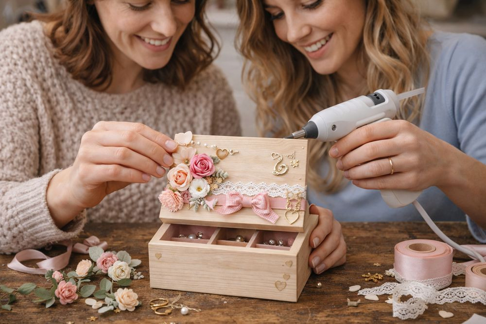 Egy kisebb fa dobozt bélelj ki filccel, és díszítsd a fedelét saját stílusod szerint. Ez praktikus és mutatós ajándék, főleg ékszerkedvelőknek.